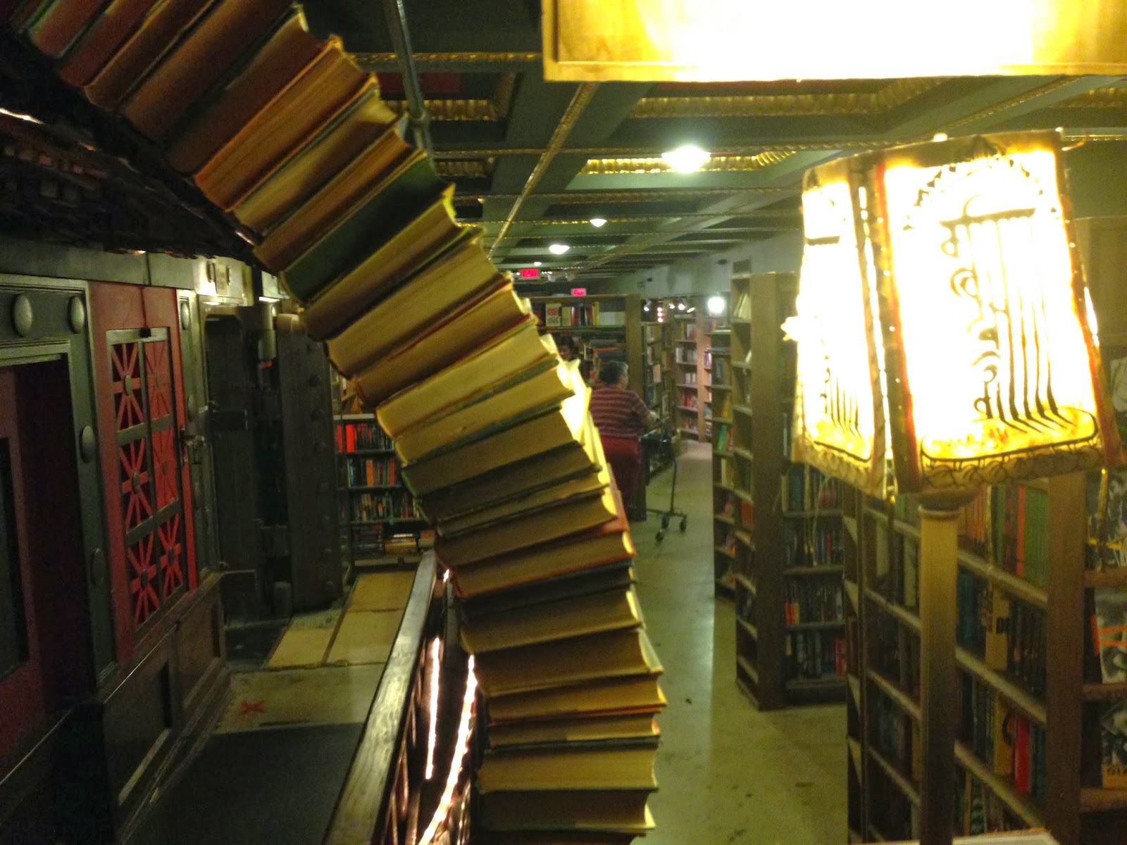 After lunch, we went to The Last Bookstore. This place is two stories of books with the coolest second floor I have ever seen. They turn books into walls up on the second floor and make really cool vignettes with stacks of books like below: